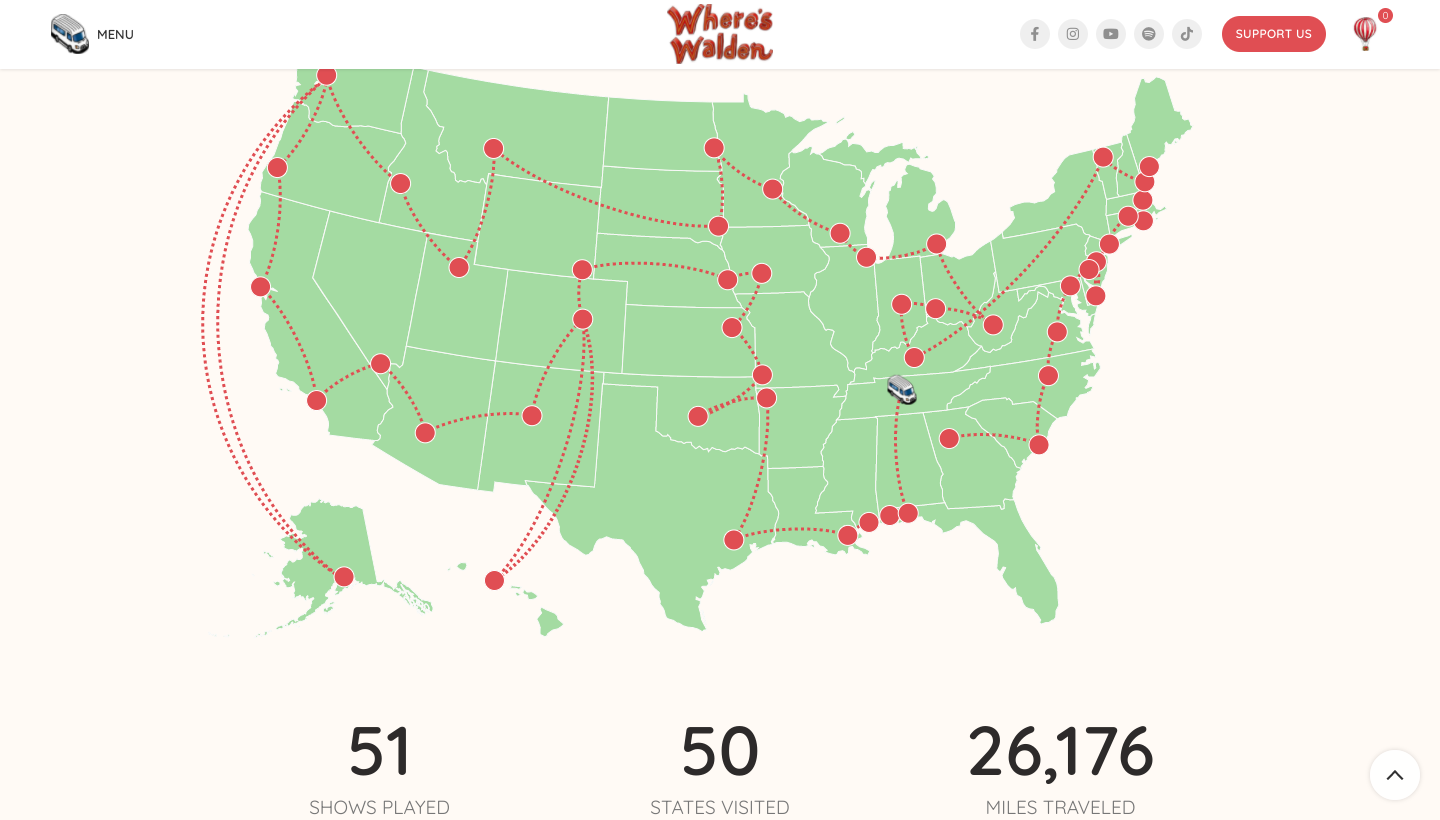 As travel restrictions started to lift, the idea for the Where’s Walden Tour was born; a self-booked DIY tour of all 50 states that relied on crowdfunding to get the band from state to state. We gamified the campaign by allowing fans to sponsor tanks of gas, hotel rooms, and experiences such as skydiving. Donors received personal shout-outs on the band’s social media.